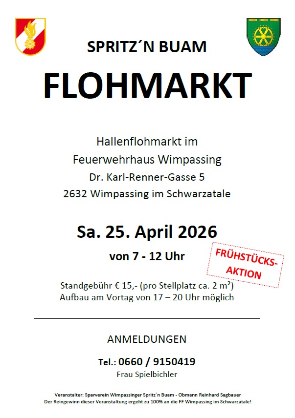 Der Sparverein Wimpassinger Spritz´n Buam veranstaltet mit Unterstützung der Freiwilligen Feuerwehr Wimpassing wieder einen Flohmarkt im Feuerwehrhaus. Neben allerhand Schnäpchen…