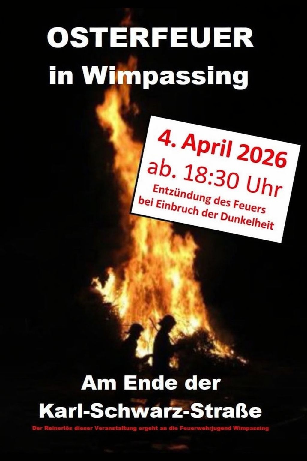 Die Feuerwehrjugend Wimpassing veranstaltet am 4. April 2026 das traditionelle Osterfeuer am Lagerplatz der Marktgemeinde Wimpassing, am Ende der Karl-Schwarz-Straße,…