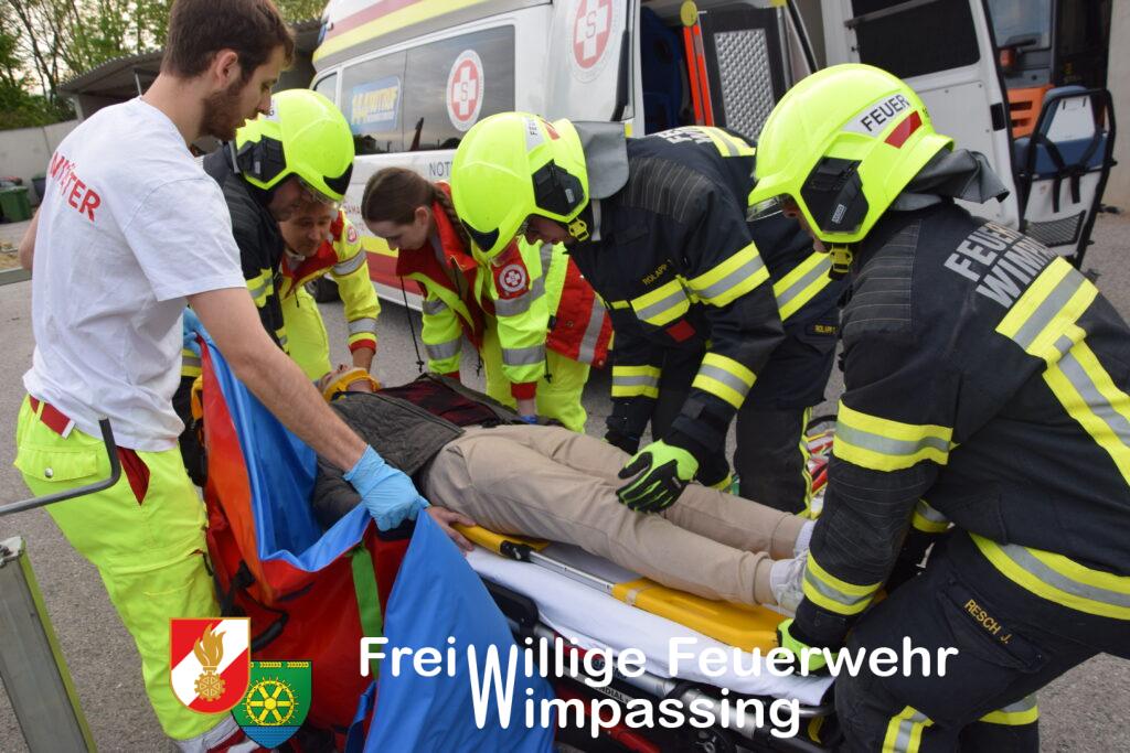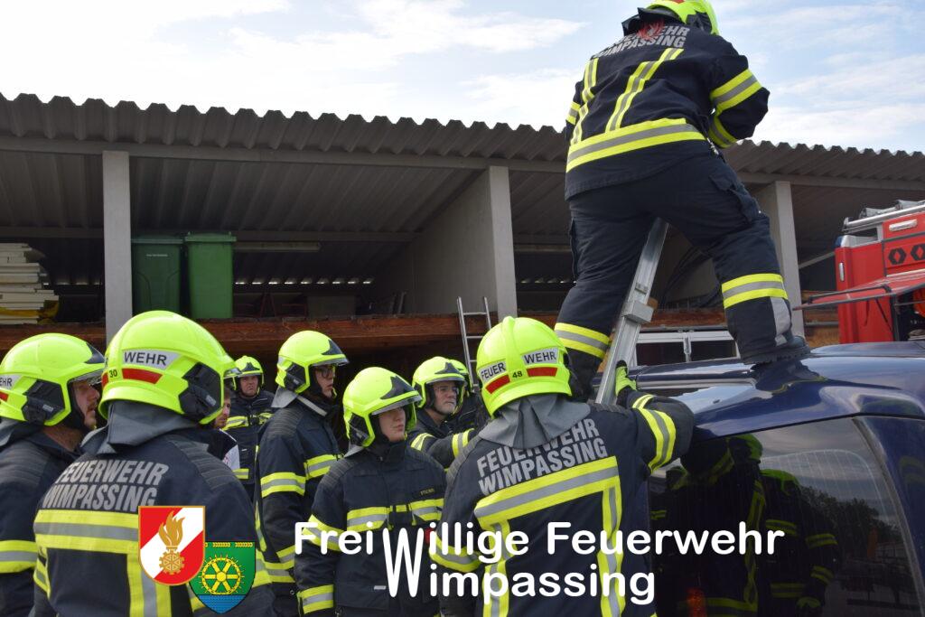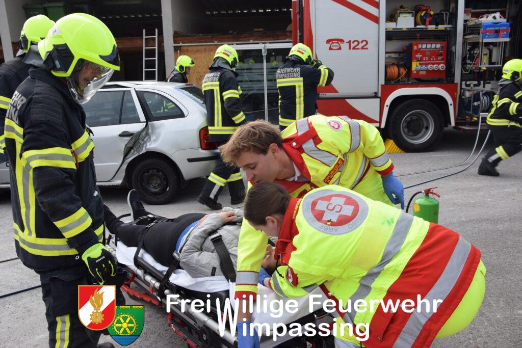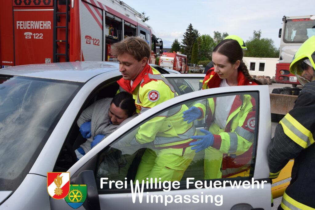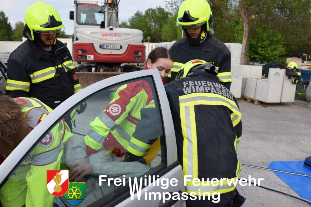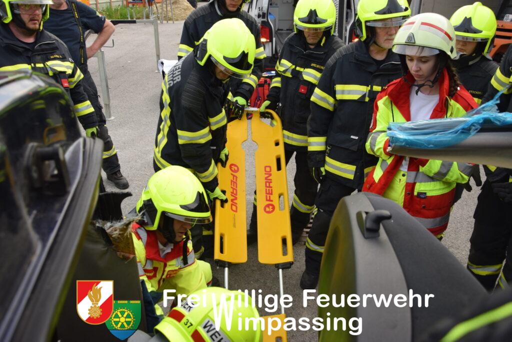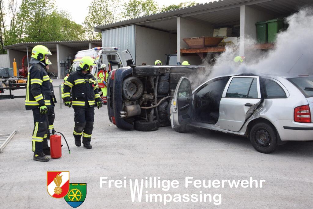 Am Freitag den 19. Mai 2023 endete der zweite Übungsblock mit einer Gesamtübung, ausgearbeitet von LM Michael Rolapp. Thema war die schonende Menschenrettung aus PKW. Hierfür wurde ein Verkehrsunfall mit zwei PKW dargestellt, wobei ein PKW auf der Seite lag. In Zusammenarbeit mit dem ASBÖ Ternitz-Pottschach wurden unter Zuhilfenahme des hydraulischen Rettungsgerätes die zwei in den PKW eingeschlossen Personen befreit. Zudem wurde während der Rettungsarbeiten beim zweiten PKW ein beginnender Brand des ersten PKW simuliert. Im Anschluss wurde geübt, wie mit Hilfe der Steckleiter der auf der Seite liegende PKW schonend wieder aufgerichtet werden kann.