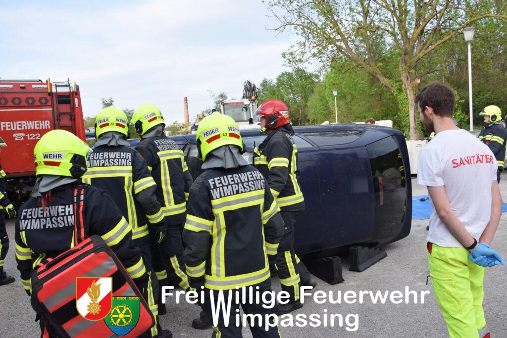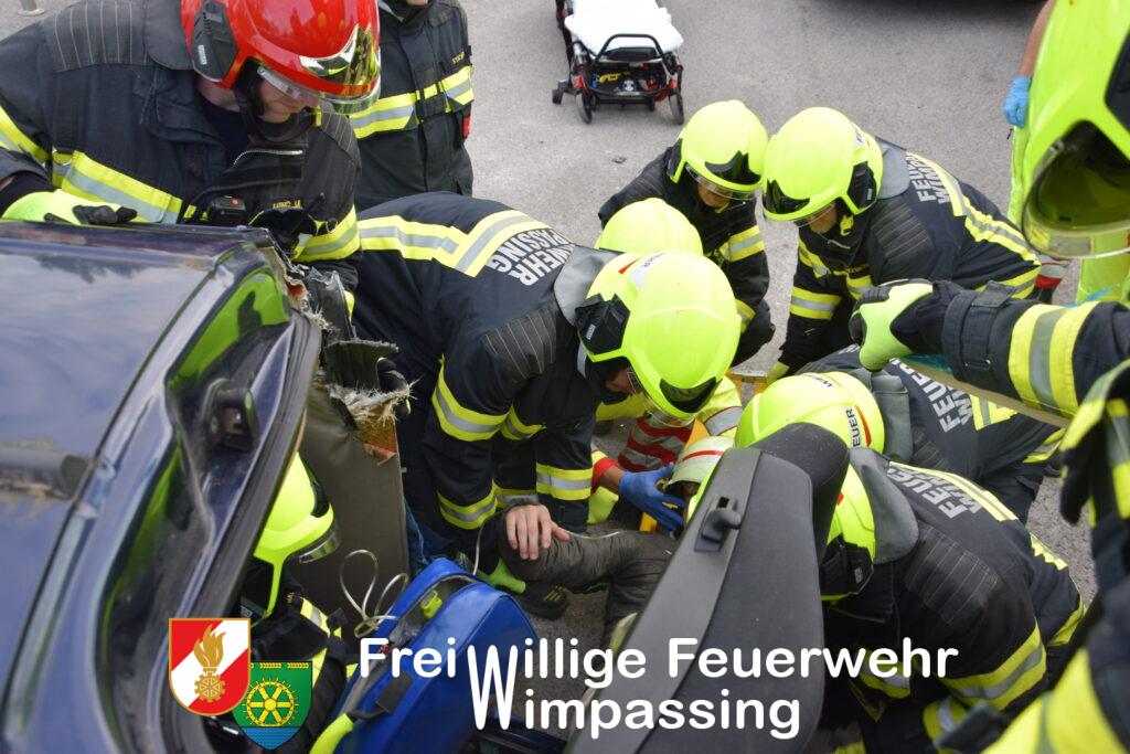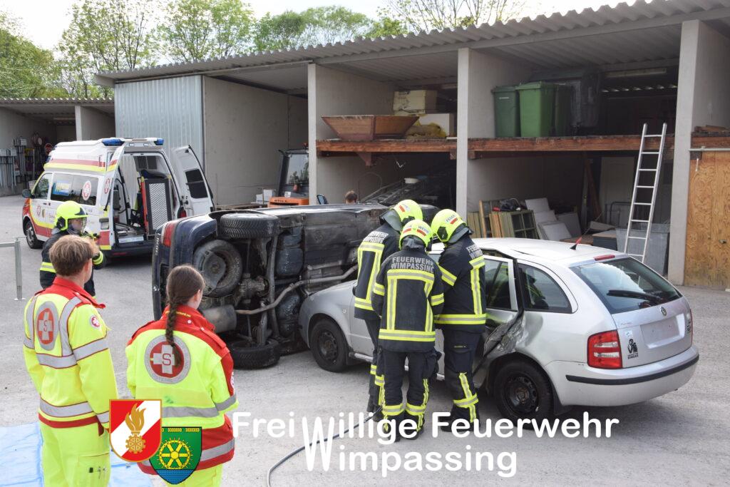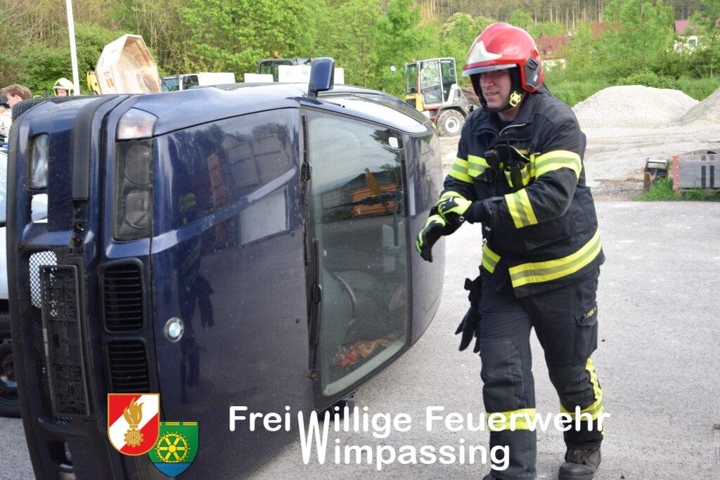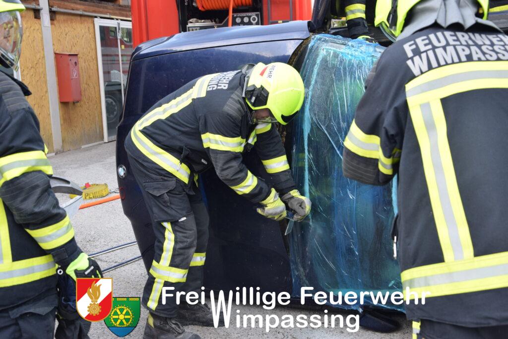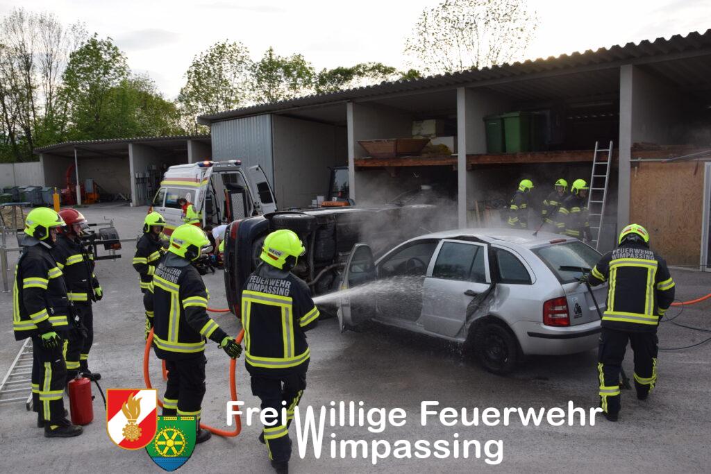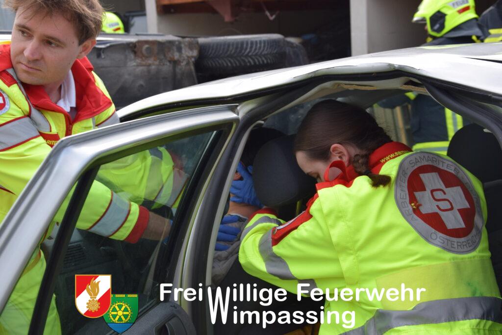 Am Freitag den 19. Mai 2023 endete der zweite Übungsblock mit einer Gesamtübung, ausgearbeitet von LM Michael Rolapp. Thema war die schonende Menschenrettung aus PKW. Hierfür wurde ein Verkehrsunfall mit zwei PKW dargestellt, wobei ein PKW auf der Seite lag. In Zusammenarbeit mit dem ASBÖ Ternitz-Pottschach wurden unter Zuhilfenahme des hydraulischen Rettungsgerätes die zwei in den PKW eingeschlossen Personen befreit. Zudem wurde während der Rettungsarbeiten beim zweiten PKW ein beginnender Brand des ersten PKW simuliert. Im Anschluss wurde geübt, wie mit Hilfe der Steckleiter der auf der Seite liegende PKW schonend wieder aufgerichtet werden kann.