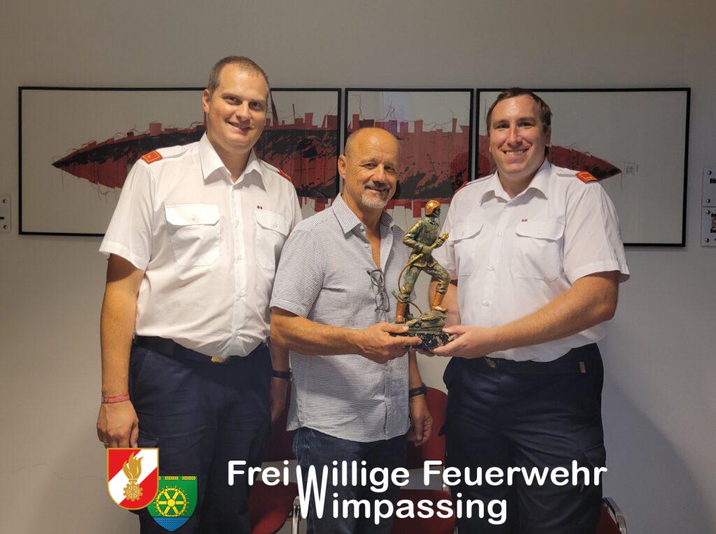 Etwas verspätet durften wir am Montag den 28.08.2023 unseren Bürgermeister zu seinem 65. Geburtstag (Anfang August) gratulieren. Wie es bei uns der Brauch ist, erhält jedes Mitglied zum 65. Geburtstag einen Heiligen Florian – so auch unser Bürgermeister als „oberster Chef“ der Feuerwehr. Dieser wurde von OBI DI(FH) Martin Heinig und BI Manuel Hofer überbracht.