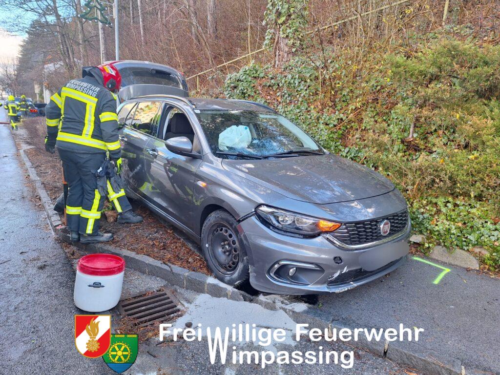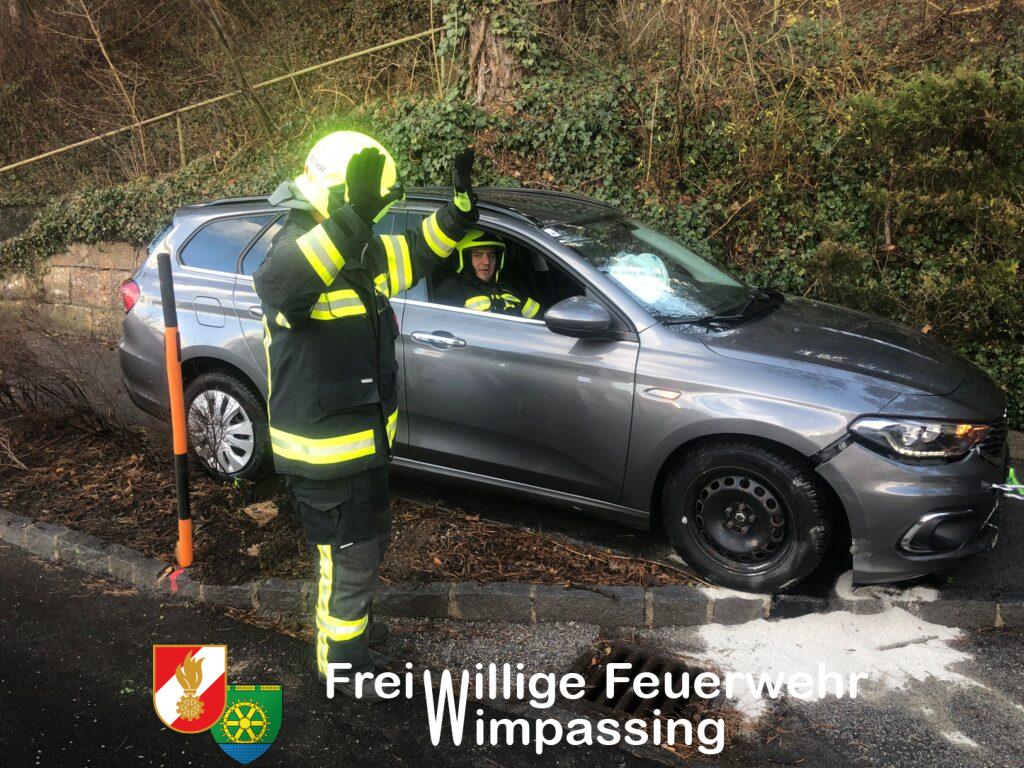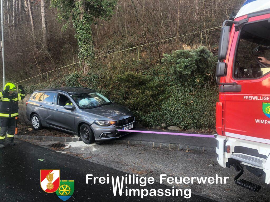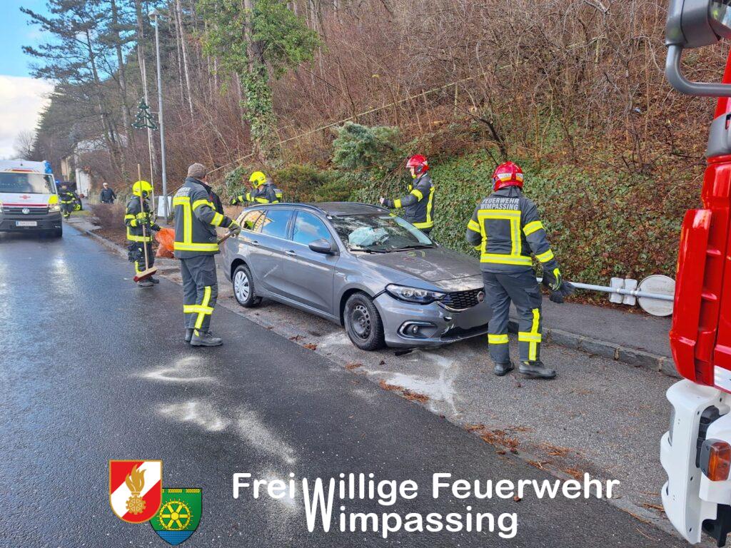 Nach Freigabe der beiden Unfallfahrzeuge durch die Polizei, wurde mit der Fahrzeugbergung begonnen. Ein PKW konnte händisch in eine Parkbucht geschoben werden, der zweite PKW musste mittels Feuerwehrfahrzeug vom Gehweg gezogen werden. Um das Fahrzeug nicht noch mehr zu beschädigen, musste eine Verkehrstafel samt Rohrsteher demontiert werden.