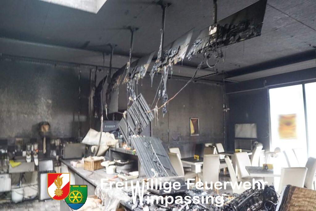 Kurz vor 6:30 Uhr wurden am heutigen Montag die Feuerwehren Wimpassing, Grafenbach, St. Valentin Landschach sowie der Atemluftcontainer der FF Gloggnitz zu einem Brand in einem Gastronomiebetrieb nach Wimpassing alarmiert. Beim Eintreffen der ersten Kräfte stand der Betrieb im inneren bereits ausgedehnt in Brand. Die enorme Hitzeentwicklung, welche sich aufgrund der dichten Auslagenscheiben staute, erschwerte den Innenangriff. Unter Atemschutz gelang es den Feuerwehren den Brand rasch unter Kontrolle zu bringen und abzulöschen. Im inneren entstand durch das Feuer enormer Schaden. Verletzt wurde glücklicherweise niemand. Durch die starke Rauchentwicklung wurde ein danebenliegendes Geschäft ebenfalls stark in Mitleidenschaft gezogen. Seitens der Feuerwehr wurde die Lokalität belüftet und die Einsatzstelle an die Polizei übergeben. Die Brandursache ist unbekannt und wird von der Polizei ermittelt. Nach rund 1,5 Stunden konnte der Einsatz beendet werden.