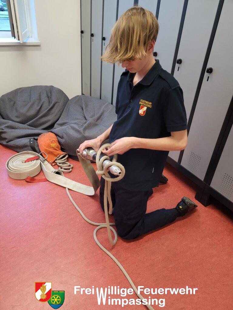 Den Beginn machte am Freitag unsere Kinderfeuerwehr. Bei deren Zusammenkunft wurde wieder spielerisch unser Feuerwehrhaus und unser Fuhrpark erkundet, ebenso wurde aus wasserführenden Armaturen eine Figur gebaut. Auch die Jugendlichen der Feuerwehrjugend haben wieder fleißig für den bevorstehenden Wissenstest Mitte April, gelernt. Folgende Themen wurden abgearbeitet: Leinen und Knoten, die Notrufnummern, sowie Alarm- und Warnsignale und das richtige Verhalten im Brandfall.