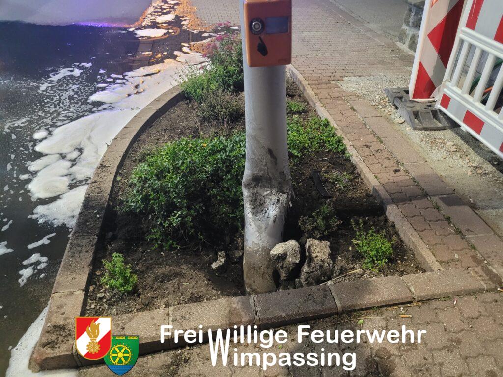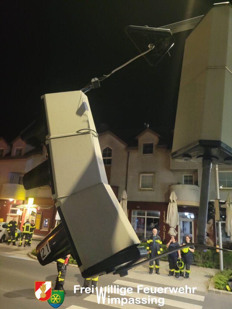 Nach der Freigabe durch die Polizei wurde mit der Fahrzeugbergung sowie dem Beseitigen von ausgeflossenen Betriebsmitteln, Fahrzeugteilen und Splittern begonnen. Da die Lichtsignalanlage stark beschädigt wurde und teilweise abzustürzen drohte, wurde das Lichtzeichen nach Abschaltung des Stroms durch die EVN abmontiert. Bis auf Schäden am Fahrzeug, der Lichtsignalanlage und einem leichten Flurschaden blieb der Lenker wie durch ein Wunder unverletzt. Um 3:15 Uhr konnten wir den Einsatz beenden und die Einsatzbereitschaft im Feuerwehrhaus herstellten.