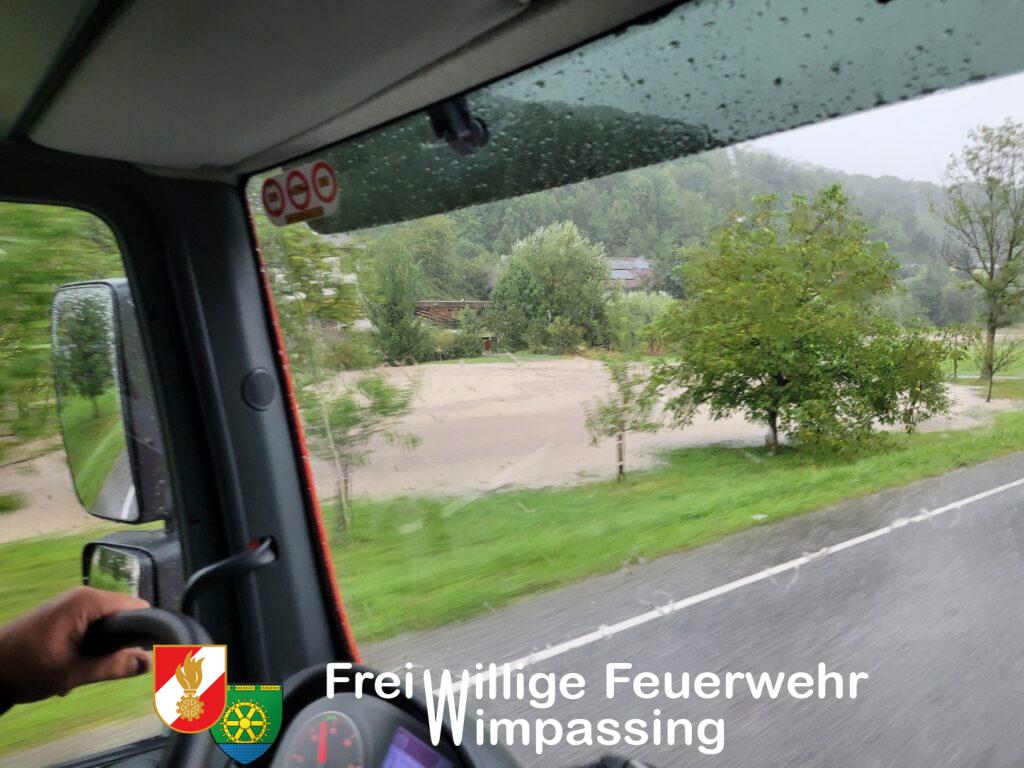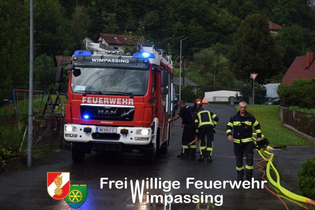 Laut Alarmierung wurden wir nach Gloggnitz-Aue gerufen, um dort die eingesetzten Kräfte zu unterstützen. Schon bei der Anfahrt wurde das Schadensausmaß sofort sichtbar. Zahlreiche Gärten standen Meter hoch unter Wasser und kleine Bäche waren zu reißenden Flüssen geworden. Da sich die Lage in Aue aber nach Aufhören der Regenfälle entspannt hat, wurden wir in das Einsatzgebiet der Gloggnitz-Weissenbach geschickt, um dort in einer Wohnsiedlung bei den Auspumparbeiten mehrerer Keller zu helfen.