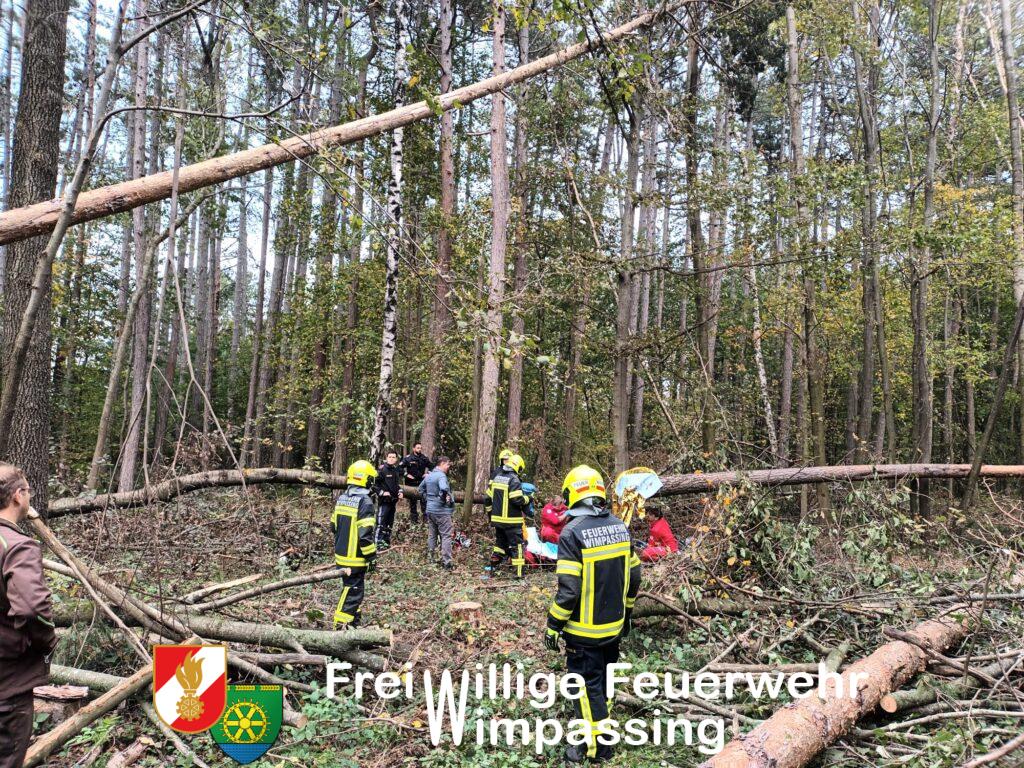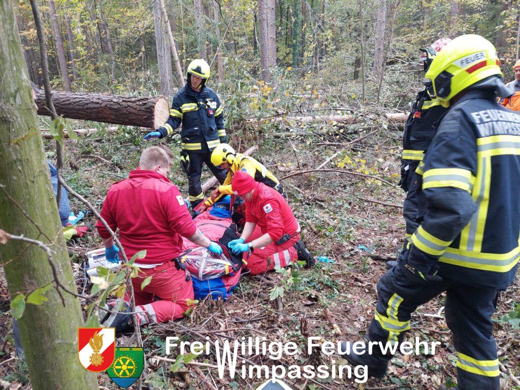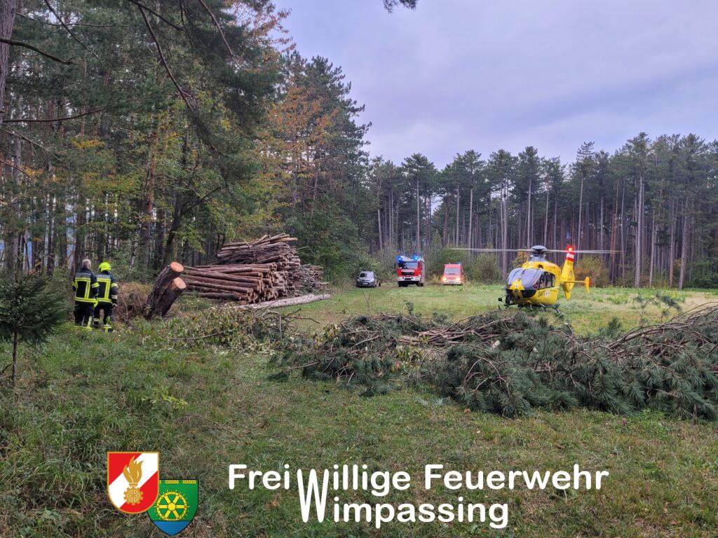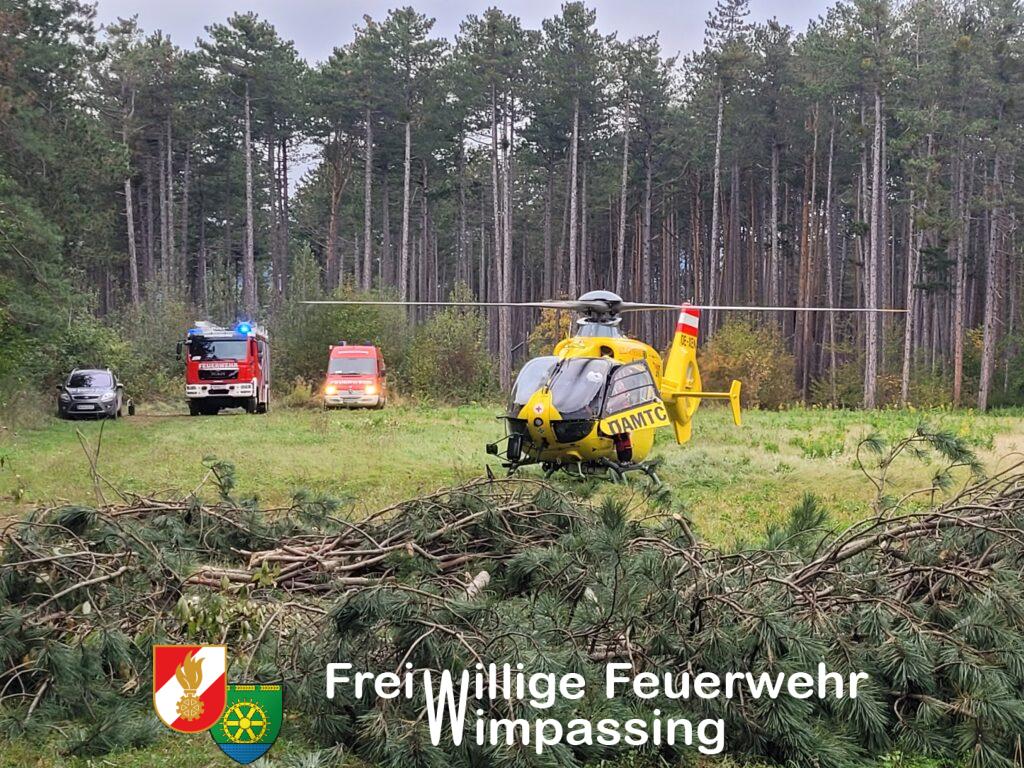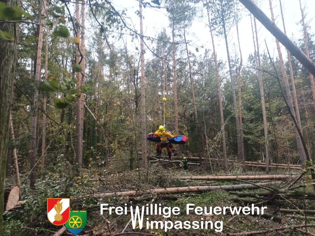 Am Dienstagnachmittag ist es in einem Waldstück in Wimpassing zu einem Forstunfall gekommen. Um 15:39 Uhr wurde unsere Feuerwehr zur Unterstützung des bereits anwesenden Rettungsdienstes alarmiert, worauf nach wenigen Minuten 9 Mitglieder mit drei Fahrzeugen ausrückten. Da Anfangs weder der genaue Einsatzort noch die Schwere des Unfalls bekannt war, fuhren wir über die Forstgasse zu und machten uns per Fuß auf den Weg Richtung ehemaligen Fußballplatz. Nachdem wir den Einsatzort erreicht hatten, wurde der Patient bereits vom anwesenden Rettungsdienst medizinisch versorgt. Am Fußballplatz wartet bereits der Rettungshubschrauber „Christophorus 3“, um den Patienten ins Krankenhaus zu transportieren. Nachdem der Patient transportfähig gemacht war, aber der Transport per Fuß aufgrund des erschwerten Geländes und der Verletzungen nicht zu bewältigen gewesen wäre, entschied man sich, den Patienten mittels Taubergung aus dem Wald auf eine freie Fläche zu fliegen und danach in den Rettungshubschrauber zu verladen.