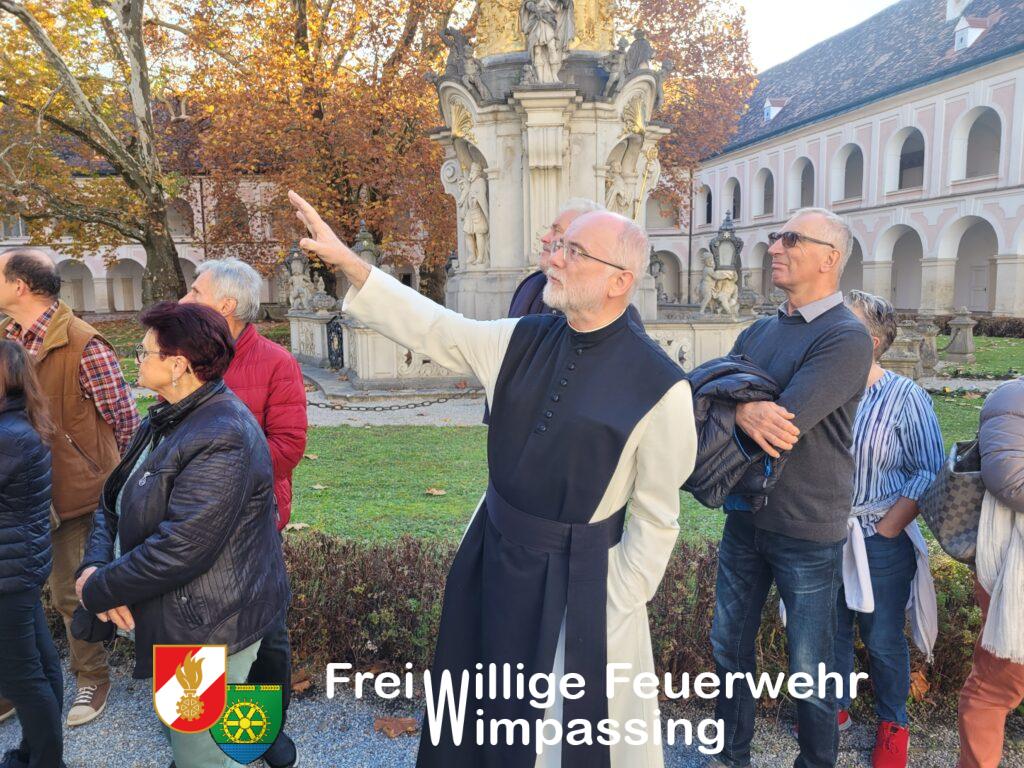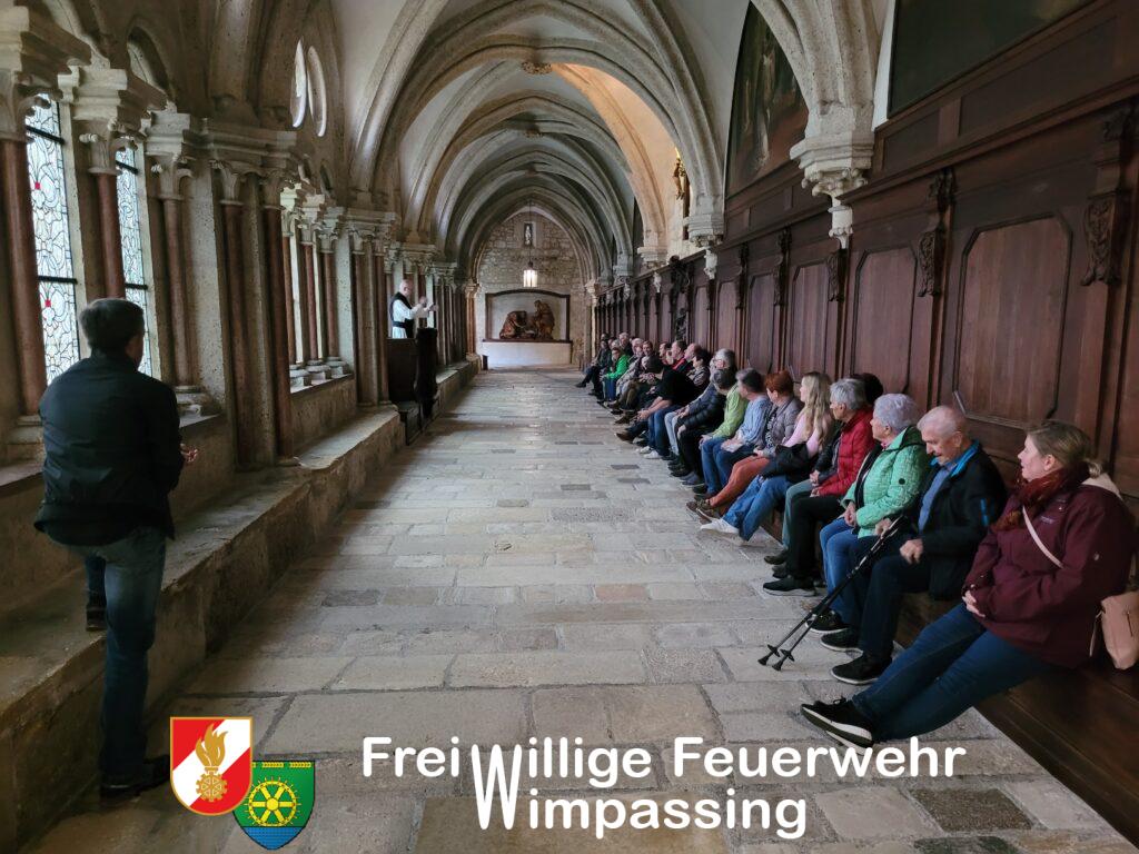 Am Sonntag, den 27. Oktober 2024, lud das Feuerwehrkommando zum Feuerwehrausflug, dem 32. Teilnehmer folgten. Am Vormittag ging es mit dem Autobus nach Heiligenkreuz. Hier gab es zunächst für alle ein Mittagessen im Klostergasthof. Nach dem ausgiebigen und köstlichen Mittagessen durften wir uns das neu gebaute Feuerwehrhaus der Freiwilligen Feuerwehr Heiligenkreuz anschauen und bekamen eine Führung und viele Informationen von Kommandant OBI Christof Schöny. Anschließend führte unser Ehrenfeuerwehrkurat Pater Josef, welcher selbst aus dem Stift Heiligenkreuz stammt, uns durch die Räumlichkeiten des Stifts. Nach dieser beeindruckenden Führung ging es abschließend nach Pfaffstätten zum „Heurigen Michaelerhof“, wo wir den Tag bei einer kleinen Jause und netten Gesprächen ausklingen ließen, bevor uns unser Buschauffeur wieder gut nach Wimpassing brachte.