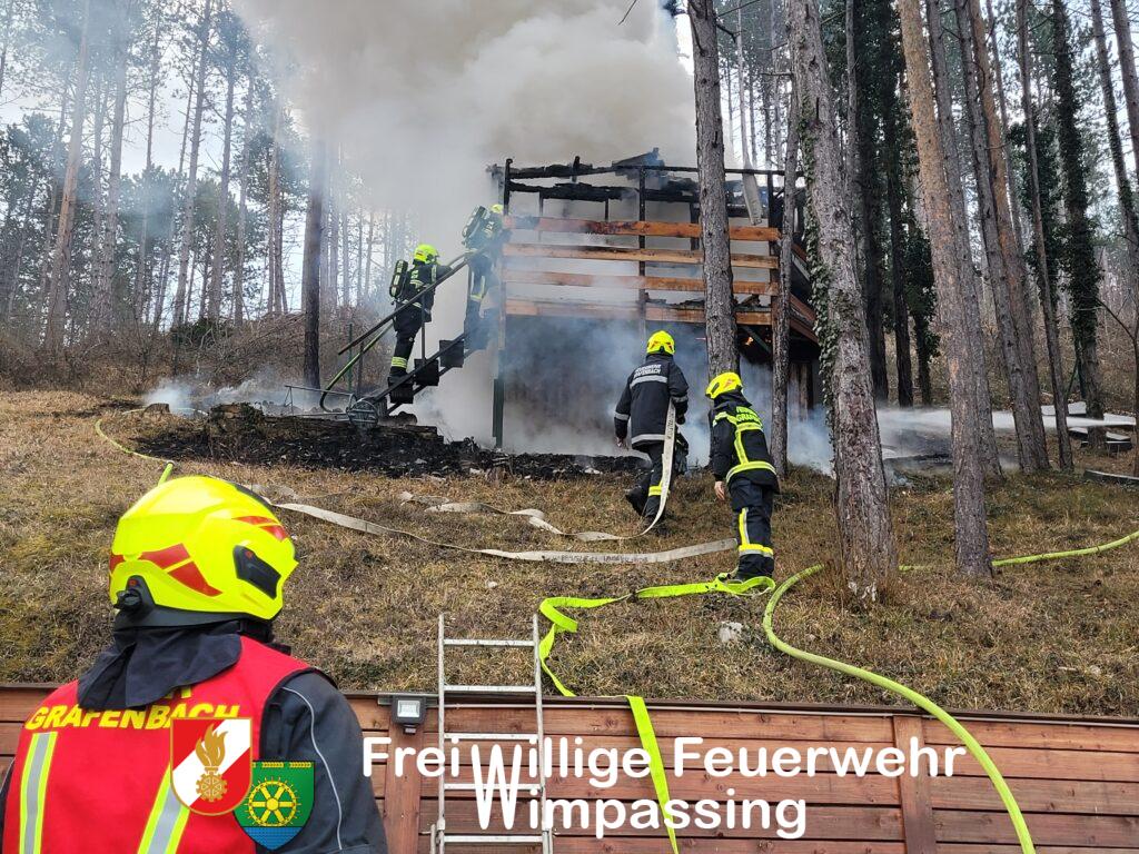 Am Sonntagmorgen, den 23. Februar 2024 um 8:48 Uhr, wurden die Feuerwehren St. Valentin-Landschach, Grafenbach und Wimpassing zu einer brennenden Gartenhütte in die Kirchengasse nach St. Valentin gerufen. Beim Eintreffen der ersten Einsatzkräfte stand die Gartenhütte bereits in Vollbrand und auch die umliegenden Bäume begannen schon zu brennen. Unverzüglich wurde eine Löschleitung gelegt und unter schwerem Atemschutz mit dem Löschangriff begonnen. Insgesamt wurden sechs Atemschutztrupps eingesetzt, welche das Brandobjekt mit drei Löschleitungen sorgfältigst ablöschten und ständig mittels Wärmebildkamera kontrollierten. Um die eingesetzten Atemluftflaschen vor Ort zu füllen, wurde auch die FF Gloggnitz-Stadt mit dem Atemluftcontainer (ALC) angefordert. Gegen 10:30 Uhr konnte der Einsatzleiter OBI Manfred Mayer „Brand aus“ melden. Zum Glück kamen beim Brand keine Person zu Schaden.