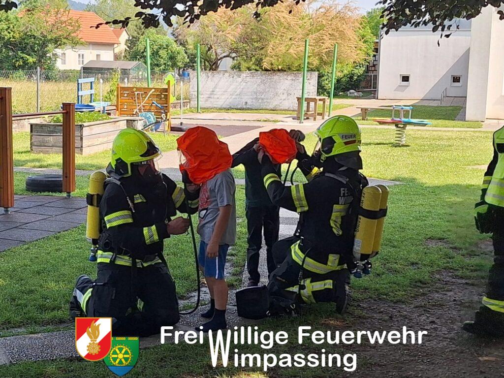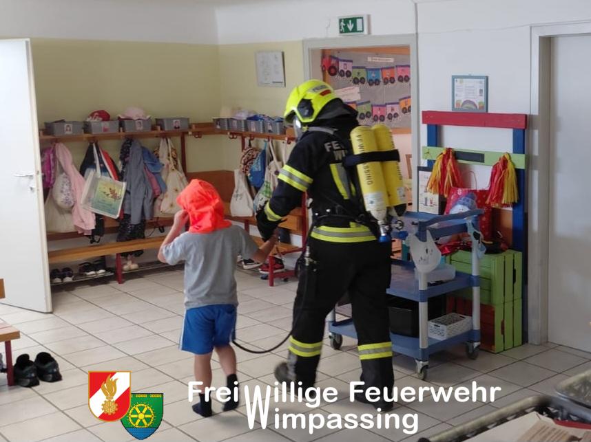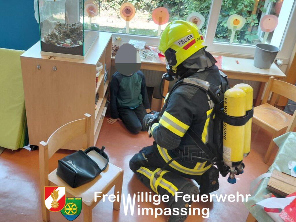 Am heutigen Dienstag (10.6.) fand die jährliche Räumungsübung im Landeskindergarten 1 in der Johann-Bauer-Straße statt. Mit Theaternebel wurde ein Brand im Wirtschaftsraum simuliert. Durch die ausgelösten Rauchmelder alarmiert, verließen fast alle Kinder und BetreuerInnen vorbildlich das Gebäude. 2 Kinder durften sich ausnahmsweise verstecken und sich von unserem Atemschutztrupp mit einer Brandfluchthaube retten lassen. Am Sammelplatz im Garten konnten sich alle Kinder noch davon überzeugen, dass, auch wenn wir mit Atemschutzausrüstung vielleicht etwas gruselig aussehen mögen, doch auch nur ein normaler Erwachsener dahintersteckt.