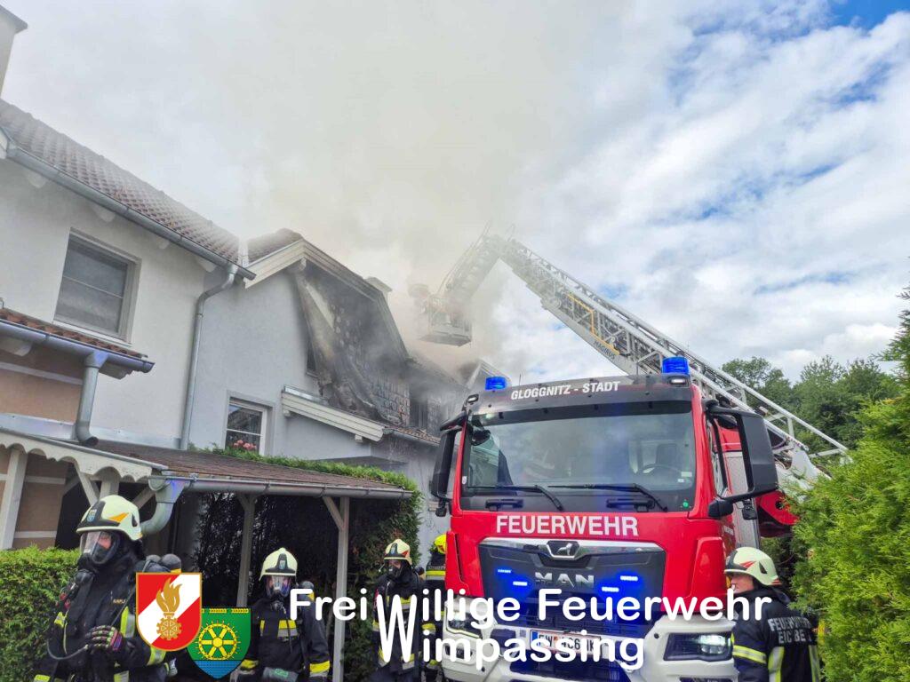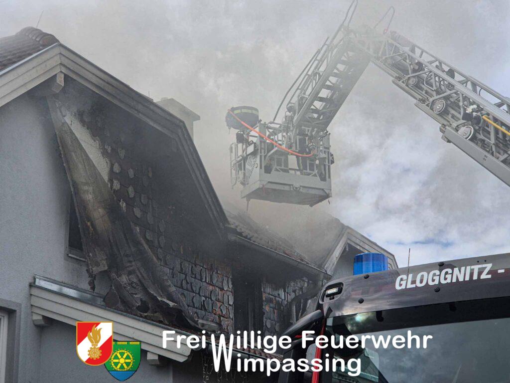 Gegen 9:35 Uhr heulten am heutigen Sonntag (31.08.2025) die Sirenen in und um Enzenreith. Ein Elektrofahrzeugbrand in Enzenreith wurde gemeldet. Bereits auf der Anfahrt war die Rauchsäule von weiten sichtbar. Da die Feuerwehr Enzenreith die Fahrzeugsegnung des neuen MTF durchführte, konnte die Mannschaft unverzüglich ausrücken. Dem Einsatzleiter vor Ort bot sich folgendes Bild: ein in Brand stehendes Elektrofahrzeug vor der Garage. Aufgrund der enormen Hitze breitete sich der Brand bereits über die Fassade auf den Dachstuhl aus. Der Einsatzleiter entschied die Alarmstufe zu erhöhen und Verstärkung nachzufordern. Da der Brand sich auf weitere Gebäude auszubreiten drohte, wurde ein umfassender Löschangriff von Innen und aussen gestartet. Ebenso wurde die neue Drehleiter der FF Gloggnitz Stadt in Stellung gebracht.