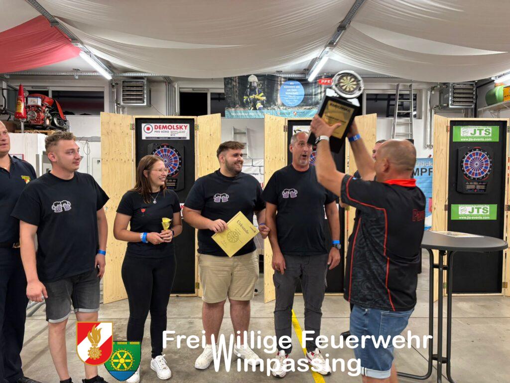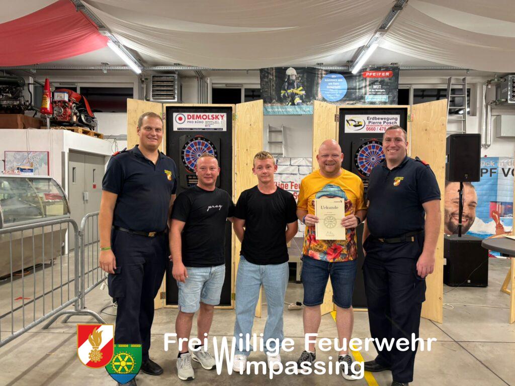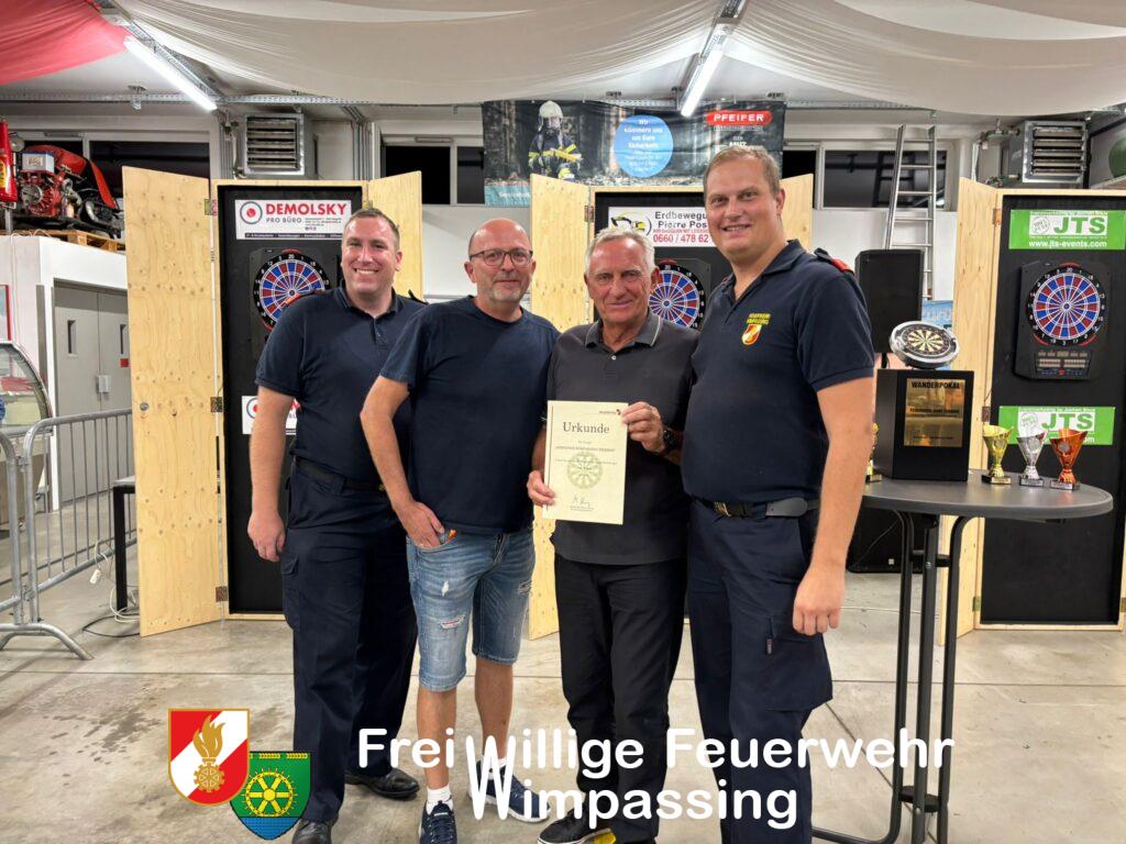 Am Abend flogen wieder die Pfeile tief. Zum bereits dritten Mal durften wir unser Firefighter-Dart-Turnier mit 16 Teams abhalten. Heuer konnte sich das Team „26er Partie“ den Sieg holen und somit den Wanderpokal mit nach Hause nehmen.