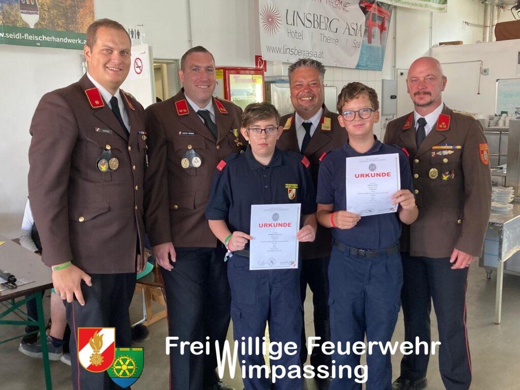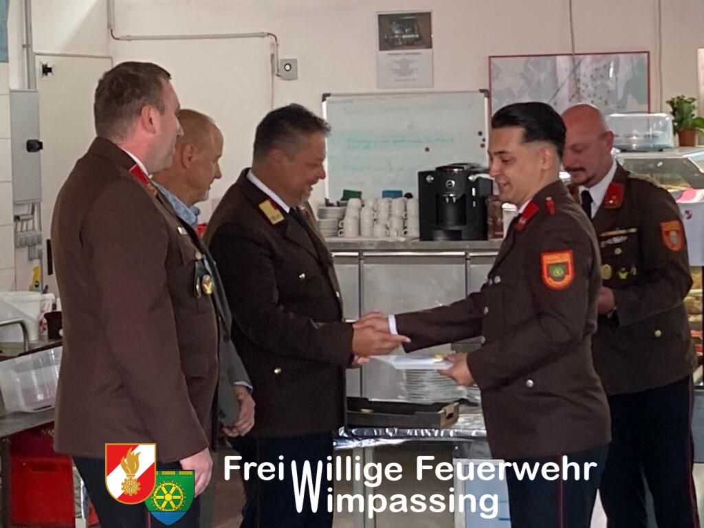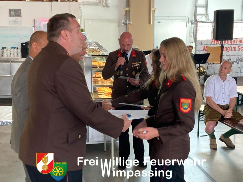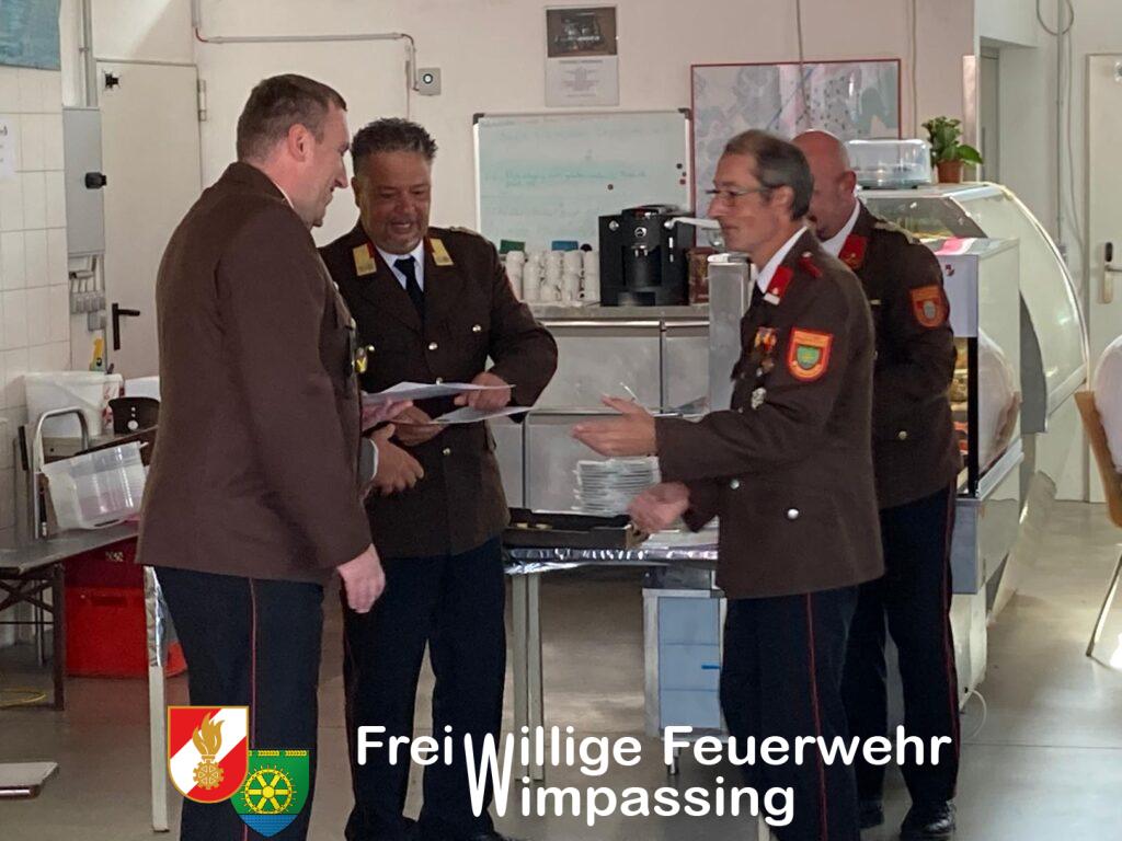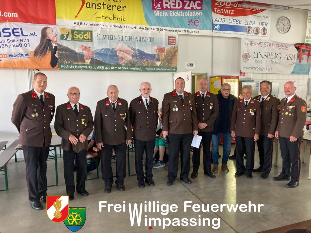 Sonntag wurde der Gottesdienst wie auch die Jahre zuvor bei uns im Feuerwehrhaus zelebriert, wofür wir uns bei Pater Josef und der Pfarre Wimpassing bedanken möchten! Im Anschluss an die heilige Messe wurden einige Mitglieder unserer Feuerwehr vor den Vorhang geholt: so wurden durch unseren Abschnittskommandanten BR Thomas Rauch, im Beisein von Unterabschnittskommandant HBI Karlheinz Peinsipp und Bürgermeister Walter Jeitler die Hochwassermedaille 2024, für den besonderen Einsatz während der Unwetterkatastrophe im September des vorherigen Jahres, verliehen. Insgesamt durften 32 Mitglieder unserer Feuerwehr diese Auszeichnung entgegen nehmen. Auch unseren Feuerwehrjugendmitgliedern JFM Matheo Baumgartner und JFM Elias Wirkner wurde das Bewerbsabzeichen in Silber feierlich überreicht!