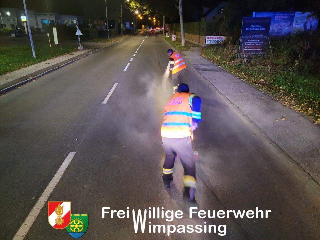 Der 4. Einsatz im Oktober (18.9. um 18:11 Uhr) und wieder musste eine Ölspur auf der B17 gebunden werden. Fünf Mitglieder sind mit 2 Fahrzeugen zur Beseitigung der rund 1000 Meter langen Ölspur ausgerückt. Die anwesende Streife der Polizeiinspektion Ternitz folgte der Öspur, welche bis nach Neunkirchen führte, aber konnte keinen Verursacher finden, da sich die Spur dort verlief. Nachdem die Straße gereinigt war und die Straßenmeisterei anwesend war, um Warnzeichen aufzustellen, konnten wir um 19:50 Uhr wieder ins Feuerwehrhaus einrücken.