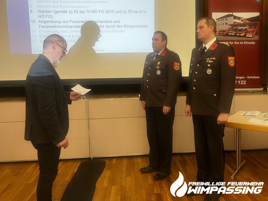 Am Sonntag, den 11. Jänner 2026 um 10:30 Uhr, fand im Kulturcentrum Wimpassing die diesjährige Mitgliederversammlung der Freiwilligen Feuerwehr Wimpassing statt. Dieses Jahr stand auch die Wahl des Kommandanten und dessen Stellvertreter für die kommenden fünf Jahre auf der Tagesordnung.