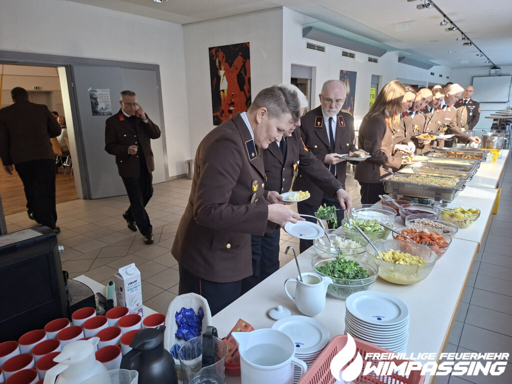 Nach den Ansprachen unserer Ehrengäste wurde die Sitzung nach rund zwei Stunden mit dem Feuerwehrgruß GUT WEHR geschlossen. Anschließend lud das Kommando alle Kameradinnen und Kameraden samt PartnerInnen zum gemeinsamen Mittagessen ein.