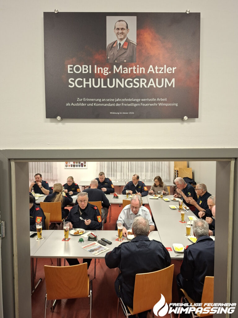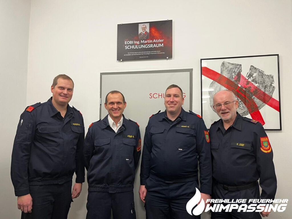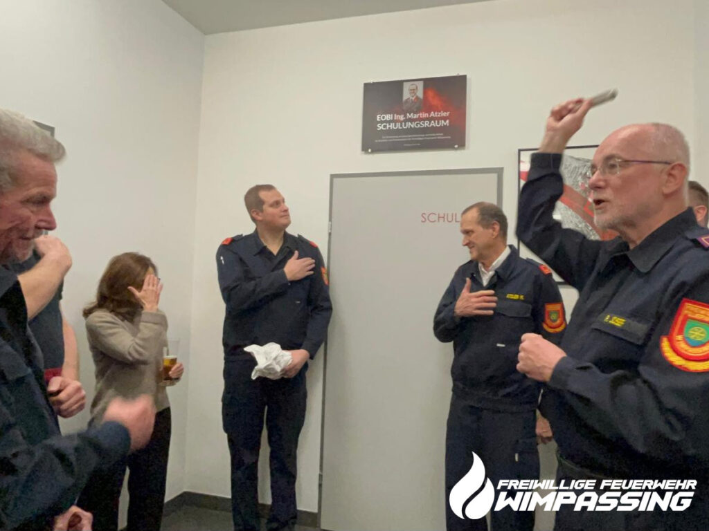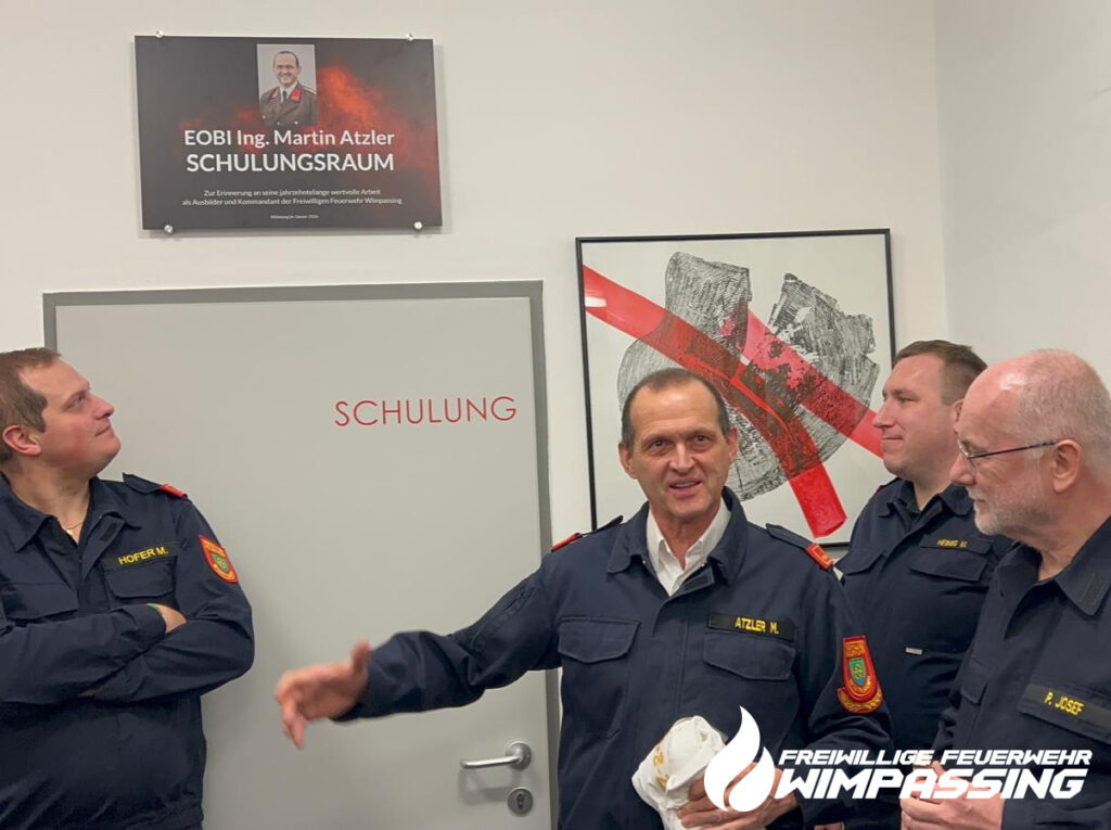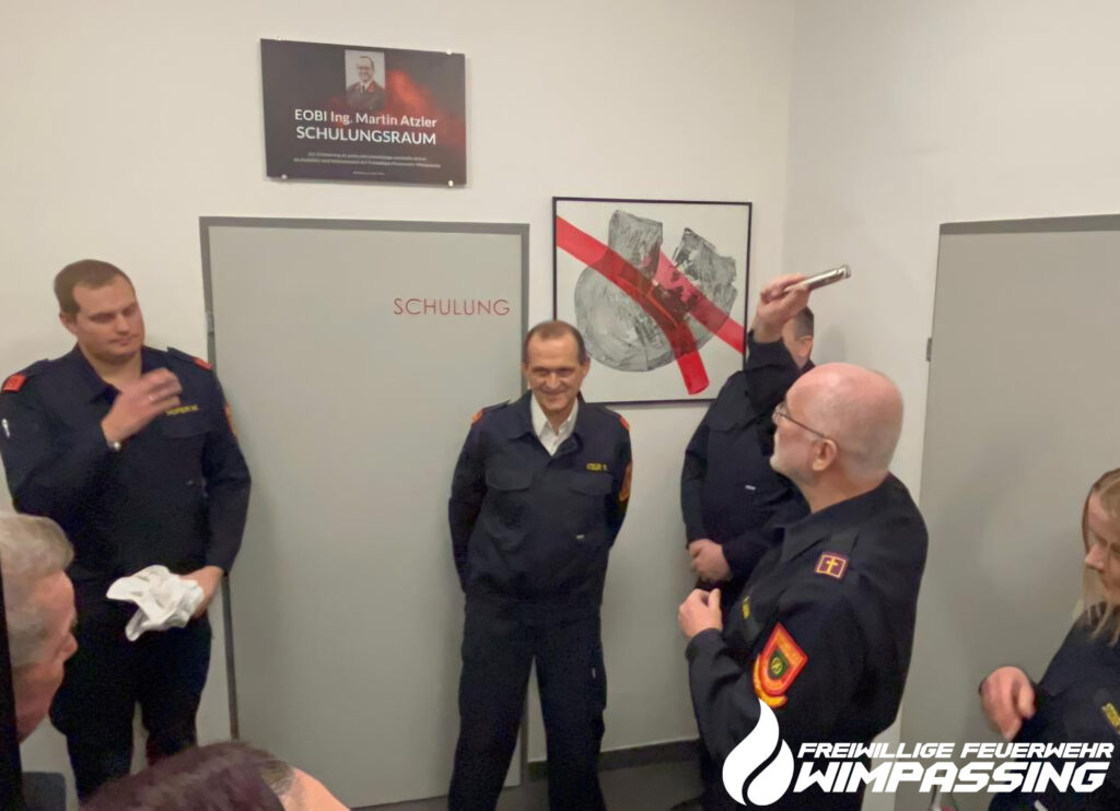 Wie bei der Jahreshauptversammlung angekündigt wurde unser Schulungsraum umbenannt. Unser langjähriger Kommandant und Ausbilder in der Feuerwehr, OBI Ing. Martin Atzler, führte 20 Jahre lang die Freiwillige Feuerwehr Wimpassing und war über 30 Jahre lang für die Ausbildung verantwortlich. In dieser Zeit ist ein moderner und der Zeit angepasster Übungsplan mit Winterschulungen, Turnusübungen, Gesamtübungen und später auch Montagsübungen erstellt worden. Zusätzlich wurde ein Übungskatalog mit allen Übungsthemen erstellt, welcher bis heute über 100 verschiedene Themen beinhaltet.