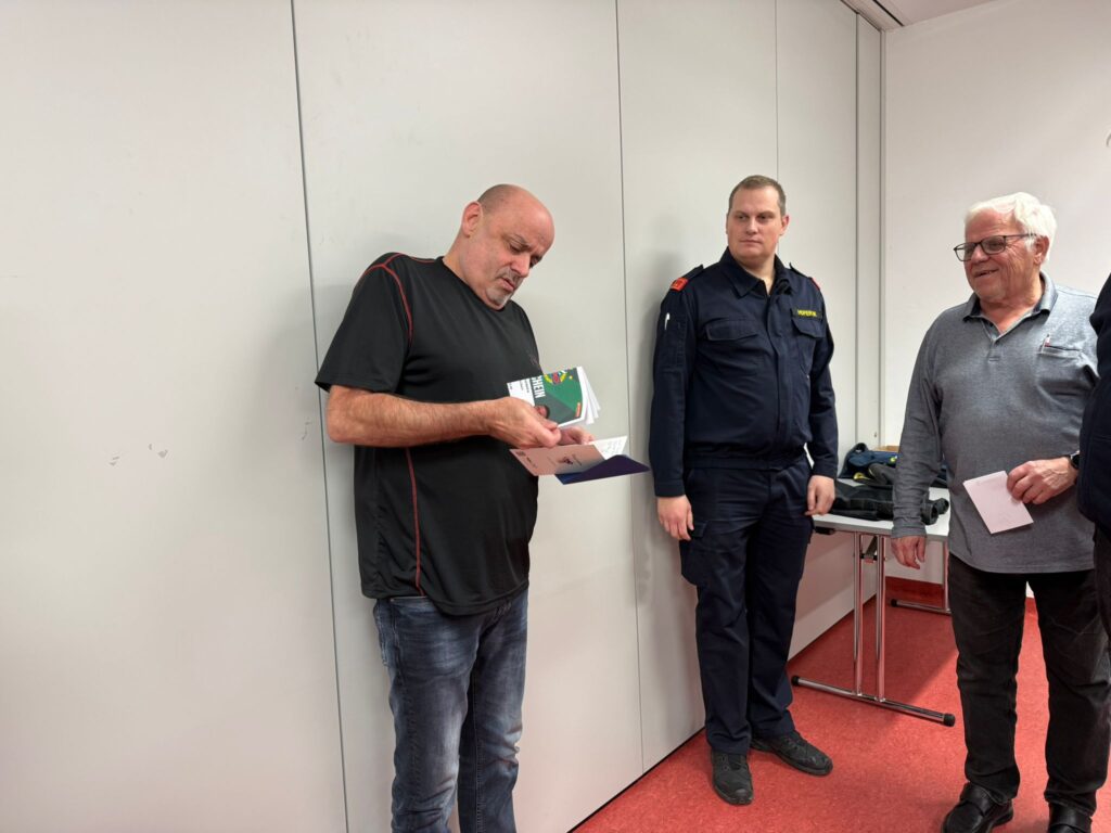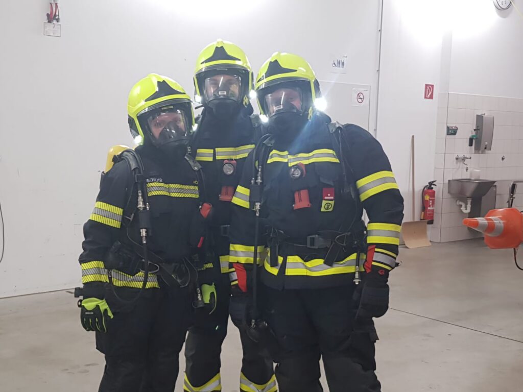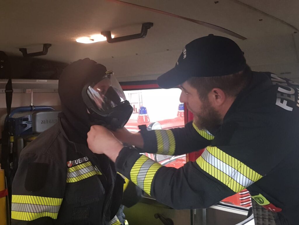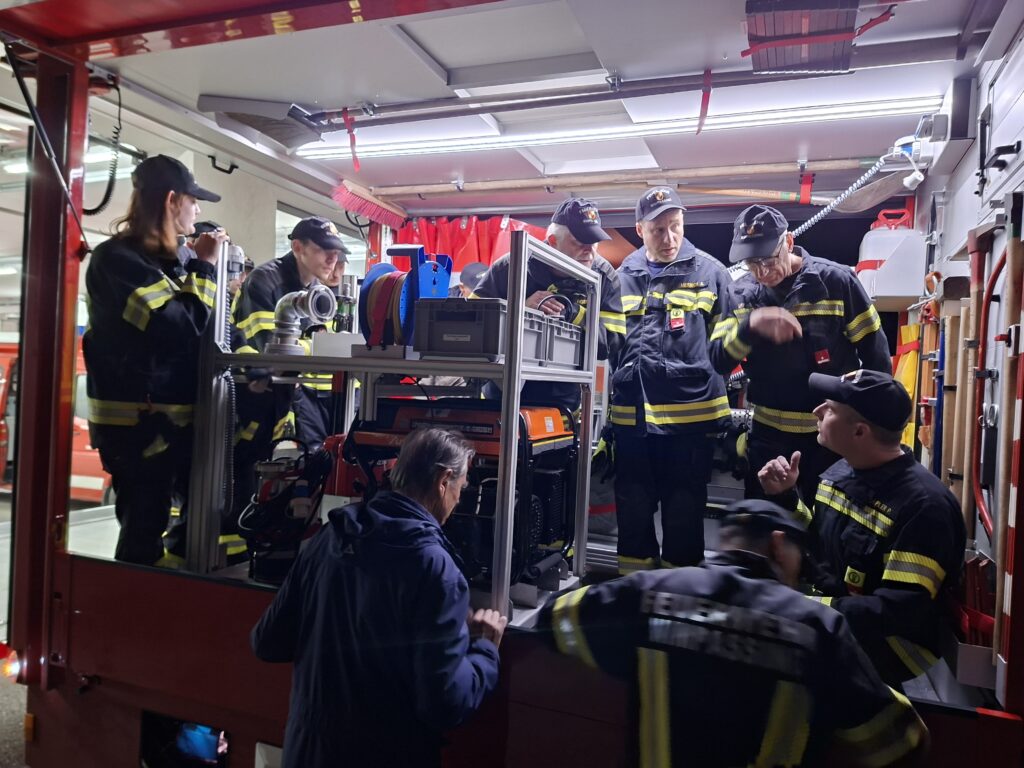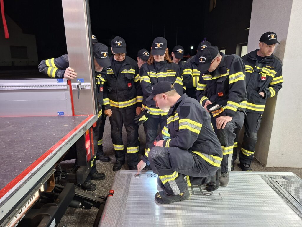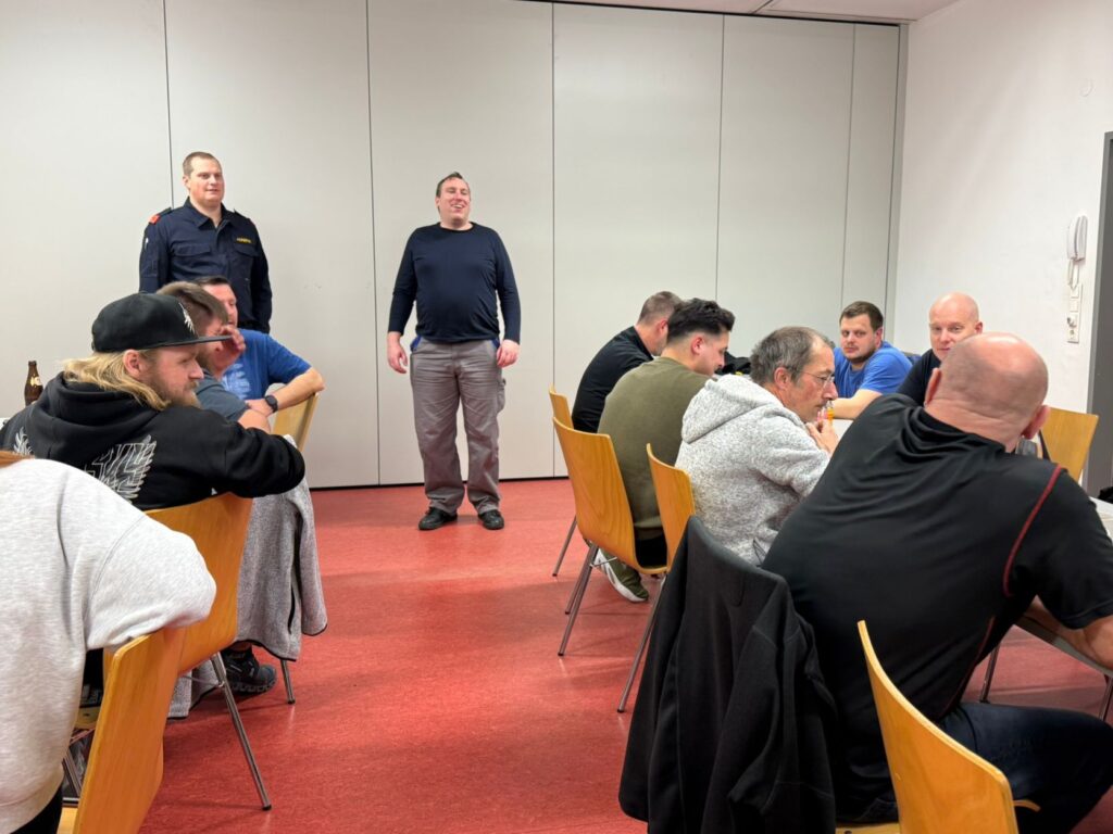 Danach teilten sich die 25 anwesenden Mitglieder auf die beiden Übungsthemen „Beladung inkl. Ladesicherung – HLF1-VF“ und „Atemschutz – Ausrüsten (Funk, Wärmebildkamera, Kennzeichnung von Räumen, mobiler Rauchverschluss)“ auf.