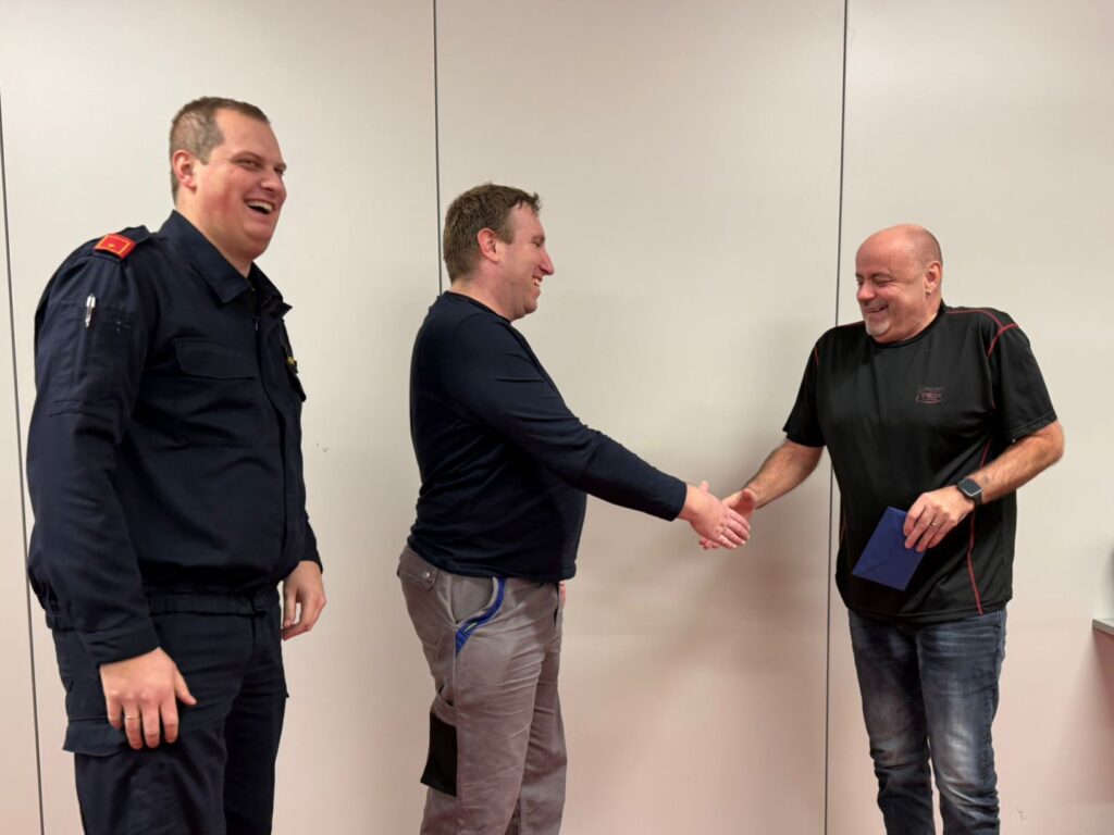 Nach der Übung lud unser EHVM Fritz Baumgartner, anlässlich seines 60. Geburtstag, zu einer Jause ein. Das Kommando und die Küchenverantwortlichen nutzen die Gelegenheit, Geschenke zu überreichen.